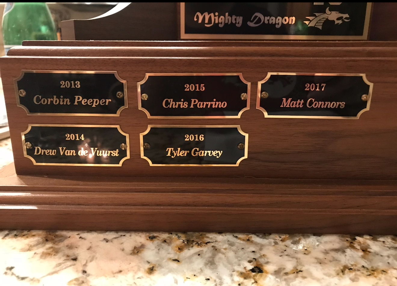 I told Bradley about the larger award with the plaques of every player who had received the award each year. He did not know that it existed and I told him his name would be added to the award. I’ve asked several people at CHS where the award is located. I sure would like an updated picture of the plaques of each special player that was chosen. I pray it’s not stuck in a closet somewhere in the large sports facility.